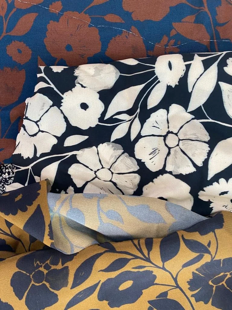 The botanical collage translated into fabric, bringing archival flowers into contemporary textiles.